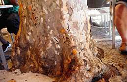 Var-matin s'est fait l'écho, dans son édition du 23 juillet 2010, du dépérissement aussi brutal qu'inquiétant d'un magnifique platane situé sur le domaine public mais à l'intérieur du périmètre occupé par la terrasse du bar-brasserie « Le Wafou ». Presque du jour au lendemain, le feuillage a changé de couleur, laissant présager le pire.