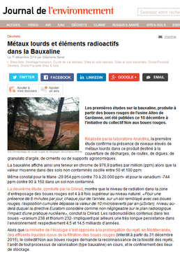 Les premières études sur la Bauxaline®, produite à partir des boues rouges de l’usine Alteo de Gardanne, ont été publiées ce 10 décembre 2014 à l’initiative du collectif "Non aux boues rouges".