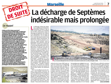 Créée en 1976 à deux pas du 15e arrondissement de Marseille, la décharge Valsud de Septèmes-les-Vallons est une Installation de stockage des déchets non dangereux (ISDND). En clair, un centre d’enfouissement de 54 ha exploité par Veolia Environnement dans le cadre d’une convention avec la mairie de Septèmes, propriétaire du terrain, à qui est versé un loyer annuel d’environ 1million d’euros.