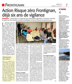 ARZF participe, en effet, aux trois Commissions de suivi de site (CSS), des instances de concertation et d’information, de l’UVE de Sète, de GDH et de Scori. Reçue annuellement par les ingénieurs de la Direction régionale de l’environnement (Dreal), l’association déplore, néanmoins, « les informations succinctes qui nous sont données ce qui nuit à notre crédibilité. Il faudrait veiller au respect des associations qui s’impliquent ». Et de citer la CSS de GDH de février 2016 où « le sous-préfet Philippe Nucho, lui-même, a demandé un tableau de suivi des réponses non données en séances ».
