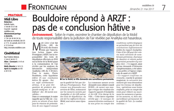 Midi Libre s’est fait l’écho (ML du 30 avril 2017) des doutes émis par l’association Action Risque Zéro Frontignan (ARZF) sur la responsabilité des tests de dépollution effectués en 2016 sur la friche de la Mobil quant à la contamination de l’air révélée par les analyses du laboratoire indépendant Analityka (ML du 3 février).