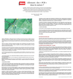présence de polychlorobiphényles (PCB) dans un champ voisin. Et dans des doses dangereuses pour la nature... et pour l’homme.