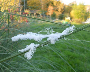 Les filaments aéroportés sont de longs fils fins, collants et blanchâtres qui tombent du ciel.